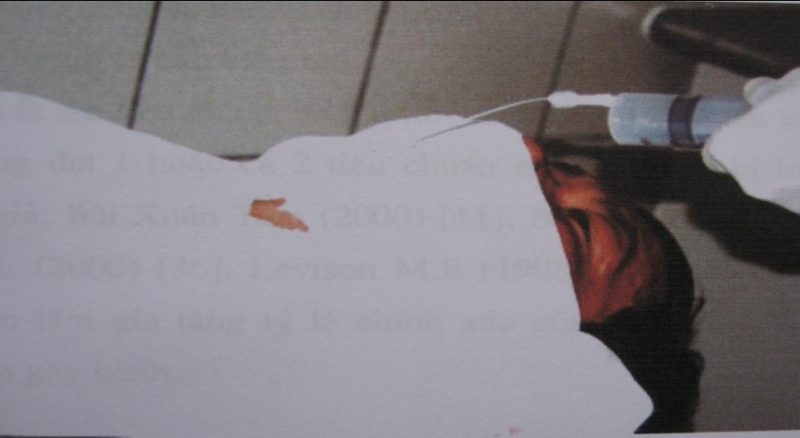 - Đặt người bệnh nằm ngửa trên giường, đầu ngửa tối đa.